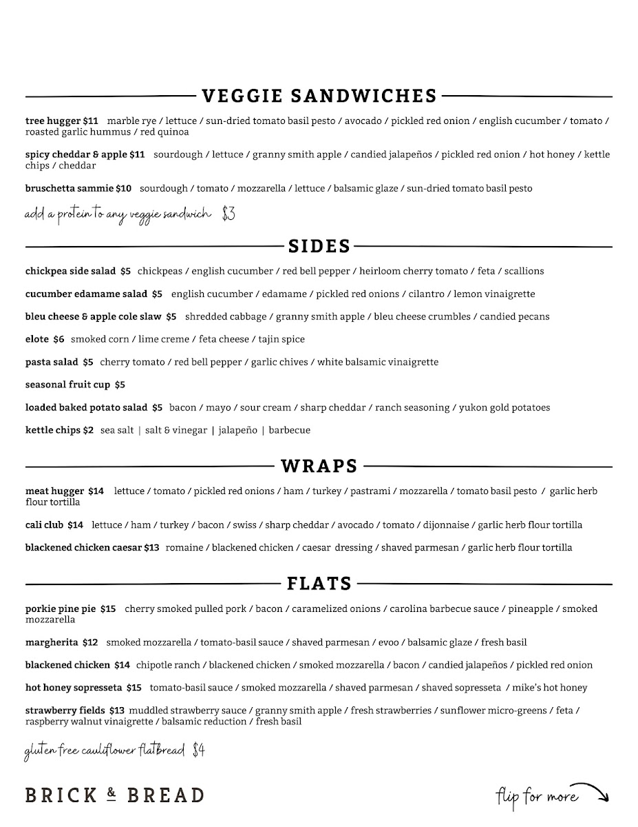 Introducing **BRICK & BREAD**, a gem located in the heart of Broken Bow, Oklahoma. This eatery captures the essence of fresh, delicious offerings that cater to both adults and kids. Their menu boasts a variety of mouthwatering sandwiches, such as the savory Bruschetta Sandwich adorned with mozzarella and sun-dried tomatoes, and the hearty Cali Club Sandwich packed with savory meats, cheese, and fresh avocado.